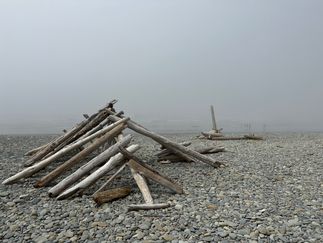 The landscape was definitely unique, and visitors more it even more interesting with all the driftwood art and architecture. There were tons of haphazard lean-tos and rock towers (aka cairns) all over the beach. People were wading in the chilly tide pools, climbing over massive driftwood stumps, and picnicking in the shade of these "tents." I had a great hike down to the beach from the crowded parking lot above and walked along the shore. The weather was nice if not a little chilly, but I felt like I was "sweating" almost immediately from the fog. I could actually feel the air on the backs of my legs every time I took a step. It felt like I was wearing phantom pajama pants.